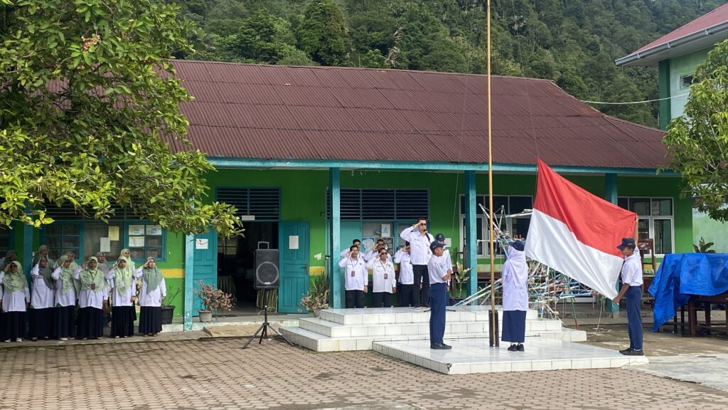 MTsN 7 Kota Padang (Humas) – MTsN 7 Kota Padang kembali melaksanakan upacara bendera pada Senin pagi dengan penuh khidmat. Kali ini, kelas VIII.2 mendapat giliran sebagai petugas upacara yang terdiri dari pengibar bendera, pembaca UUD 1945, teks Pancasila, doa, dan susunan acara lainnya. Seluruh rangkaian upacara berjalan lancar, tertib, dan penuh semangat kebangsaan.