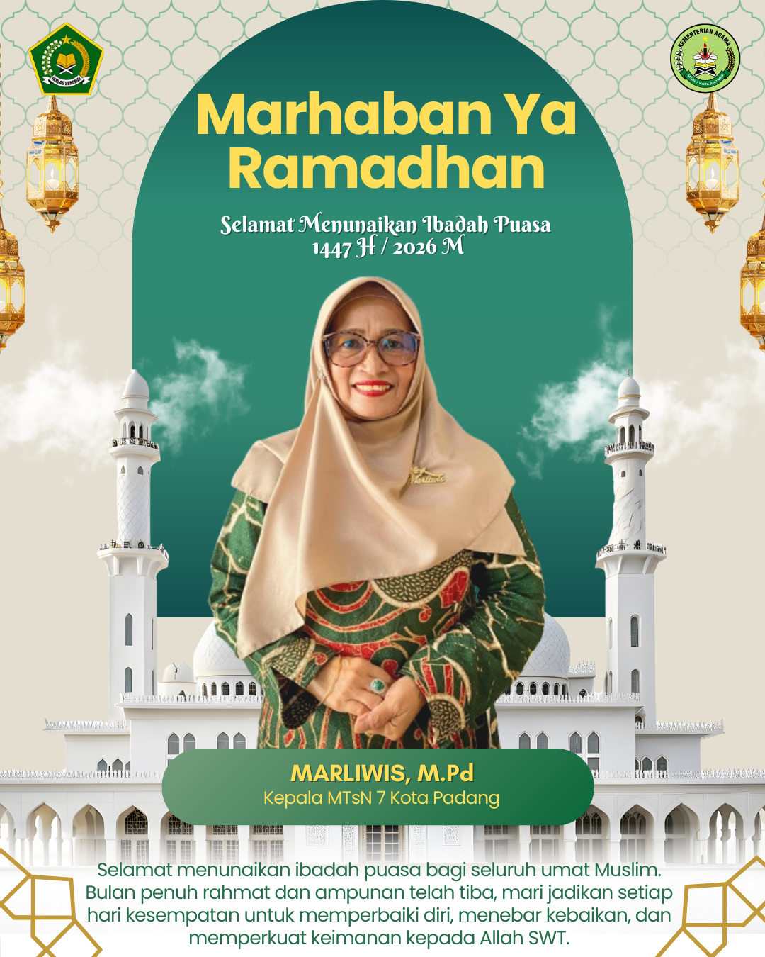 Keluarga Besar MTsN 7 Kota Padang Mengucapkan: Selamat Menunaikan Ibadah Puasa Ramadhan 1447 H “Marhaban ya Ramadhan. Mari jadikan momentum…