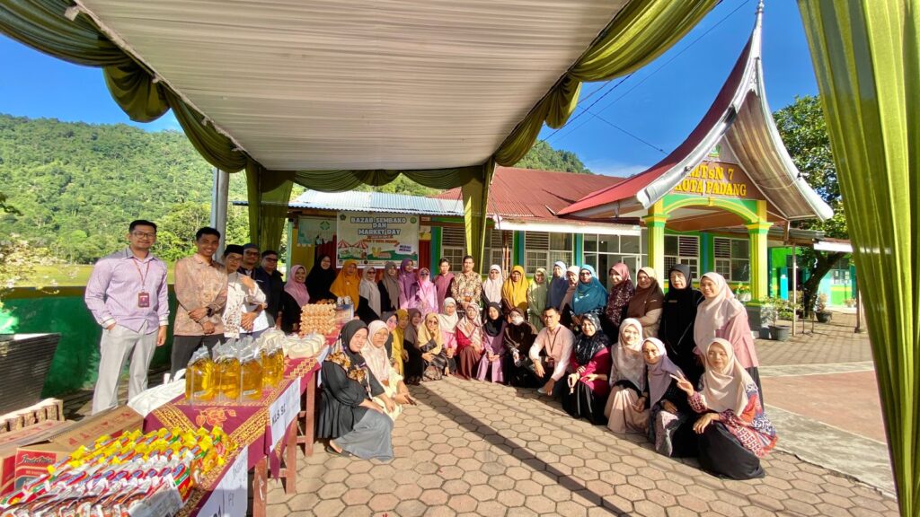 MTsN 7 Kota Padang (Humas) – MTsN 7 Kota Padang kembali menunjukkan komitmennya dalam membentuk karakter peduli sosial sekaligus melatih keterampilan ekonomi peserta didik melalui kegiatan Kokurikuler Bazar Sembako Murah, yang digelar di lingkungan madrasah, Jumat, 26 September 2025. Kegiatan ini disambut antusias oleh siswa, guru, serta masyarakat sekitar. Berbagai bahan pokok seperti beras, minyak goreng, telur, gula, dan kebutuhan harian lainnya dijual dengan harga terjangkau. Tidak hanya sekadar transaksi jual beli, bazar ini menjadi sarana edukasi nyata bagi siswa untuk belajar mengenai manajemen keuangan, pemasaran, hingga pelayanan konsumen.
