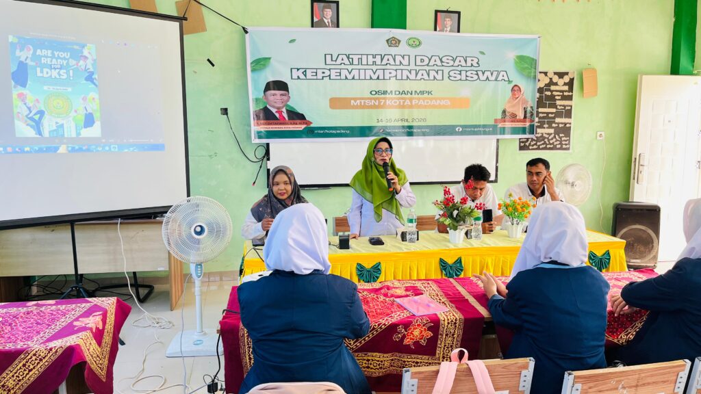 MTsN 7 Kota Padang, Humas – Madrasah Tsanawiyah Negeri (MTsN) 7 Kota Padang resmi memulai kegiatan Latihan Dasar Kepemimpinan Siswa (LDKS) bagi pengurus Organisasi Siswa Intra Madrasah (OSIM) periode terbaru. Kegiatan yang dirancang untuk membentuk karakter dan jiwa kepemimpinan siswa ini dijadwalkan berlangsung selama tiga hari ke depan.