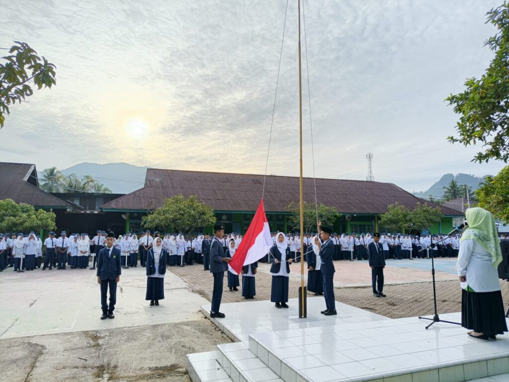 MTsN 7 Kota Padang (Humas) – Memasuki hari pertama masuk sekolah di Semester Genap Tahun Ajaran 2025/2026, MTsN 7 menggelar Upacara Bendera perdana dengan suasana penuh optimisme. Upacara yang dilaksanakan di lapangan utama ini menjadi momentum bagi seluruh civitas akademika untuk menyalakan kembali semangat belajar setelah libur pergantian tahun.