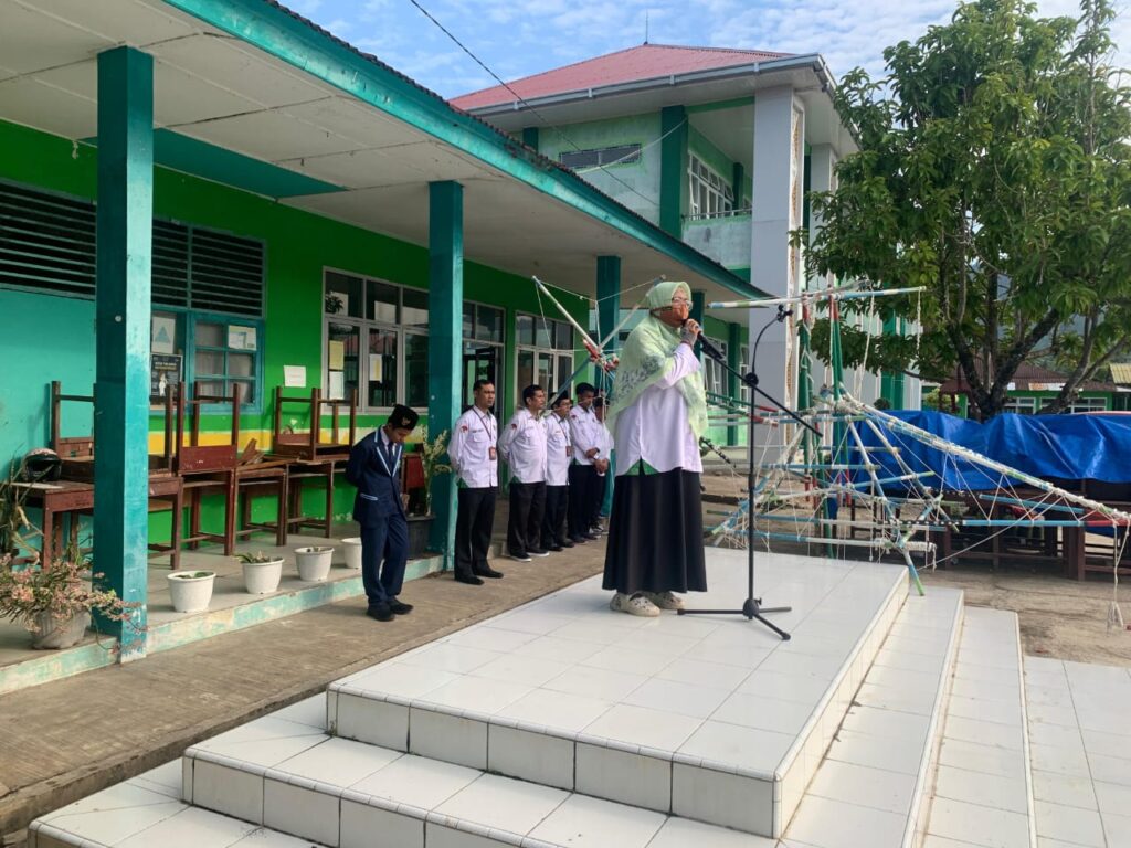 Bertindak sebagai pembina upacara adalah Wakil Kepala Madrasah Bidang Kurikulum, Yulia Fatmianeri, menyampaikan amanat yang berfokus pada pentingnya menjaga disiplin, baik dalam konteks akademik maupun spiritual Dalam amanatnya, Yulia menyoroti satu hal yang dinilai krusial bagi karakter dan kesuksesan para siswa, yaitu Sholat Lima Waktu. “Anak-anakku sekalian, kita di sekolah ini terus mendorong kalian untuk berprestasi dalam ilmu pengetahuan dan keterampilan. Namun, jangan pernah lupakan bahwa inti dari kedisiplinan dan sumber ketenangan sejati ada pada ibadah,” tegas Yulia.